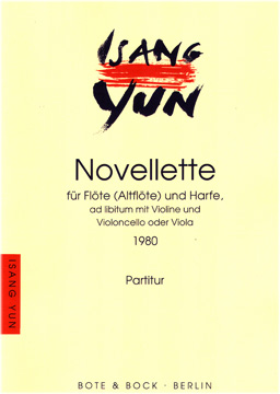 Composed in 1980 by Isang Yun, Novellette is a chamber work for harp and flute ad libitum with violin and cello or violin and viola. This graceful contemporary chamber work is a wonderful addition to any concert program.